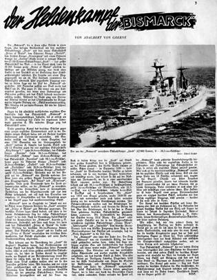 From: "Die Kriegsmarine", Deutsche Marine-Zeitung, an official journal published with the support of the Oberkommando der Kriegsmarine, Berlin , second issue for June 1941, issue 12, page 3. Editor-in-Chief: Korvettenkapitän Fritz Otto Busch. (From an original document in the collection of this archive).