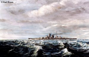 The history of the battleship Bismarck has drawn the attention of many artists over the years. If you are a painter and want to have your art displayed here don't hesitate to contact the webmaster. Click on images to enlarge.