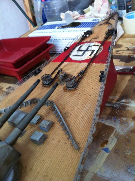 Bismarck radio controlled model. Length: 1.67 meters. Construction time: 3 years.