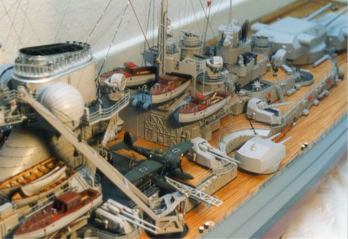 This impressive radio controlled model was built by Markus van Beek, and it is undoubtedly one of the best in the world. Markus began to work on this model in 1976, at the age of 16, using only a single drawing and a photo book. It took him 15 years to complete the model before it was finished in 1991. During that long building period he acquired all original drawings and a huge collection of over 500 photographs. After finishing with the Bismarck, Markus built the destroyer Z-38 from 1992 to May 2000, and now he is working on the Prinz Eugen, although we will have to wait about 12 years to see it complete. As you can see it is not an easy job, and it can take as much as a life time to built a model of this characteristics especially if you are working by your own.