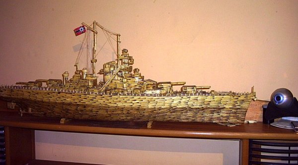 Scale: Approximately 1/300. Length: 80 cm. Width: 12 cm. Height: 30 cm. Weight: 0.48 kilograms. Matches used: About 4,000-4,500.