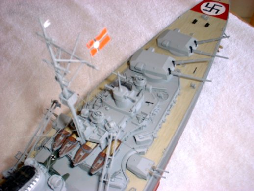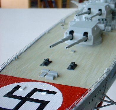 There has been endless speculation as to the Bismarck's final paint configuration; yellow turret tops, swastikas with red or